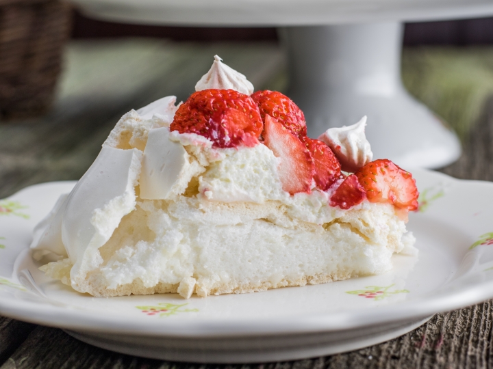 - Heat oven to 150°C/130°C fan/Gas 2. Using a pencil, mark out the circumference of a dinner plate on baking parchment. Whisk the egg whites with a hand mixer until they form stiff peaks, then whisk in the sugar, 1 tbsp at a time, until the meringue looks glossy. Whisk in the vinegar, cornflour and vanilla.